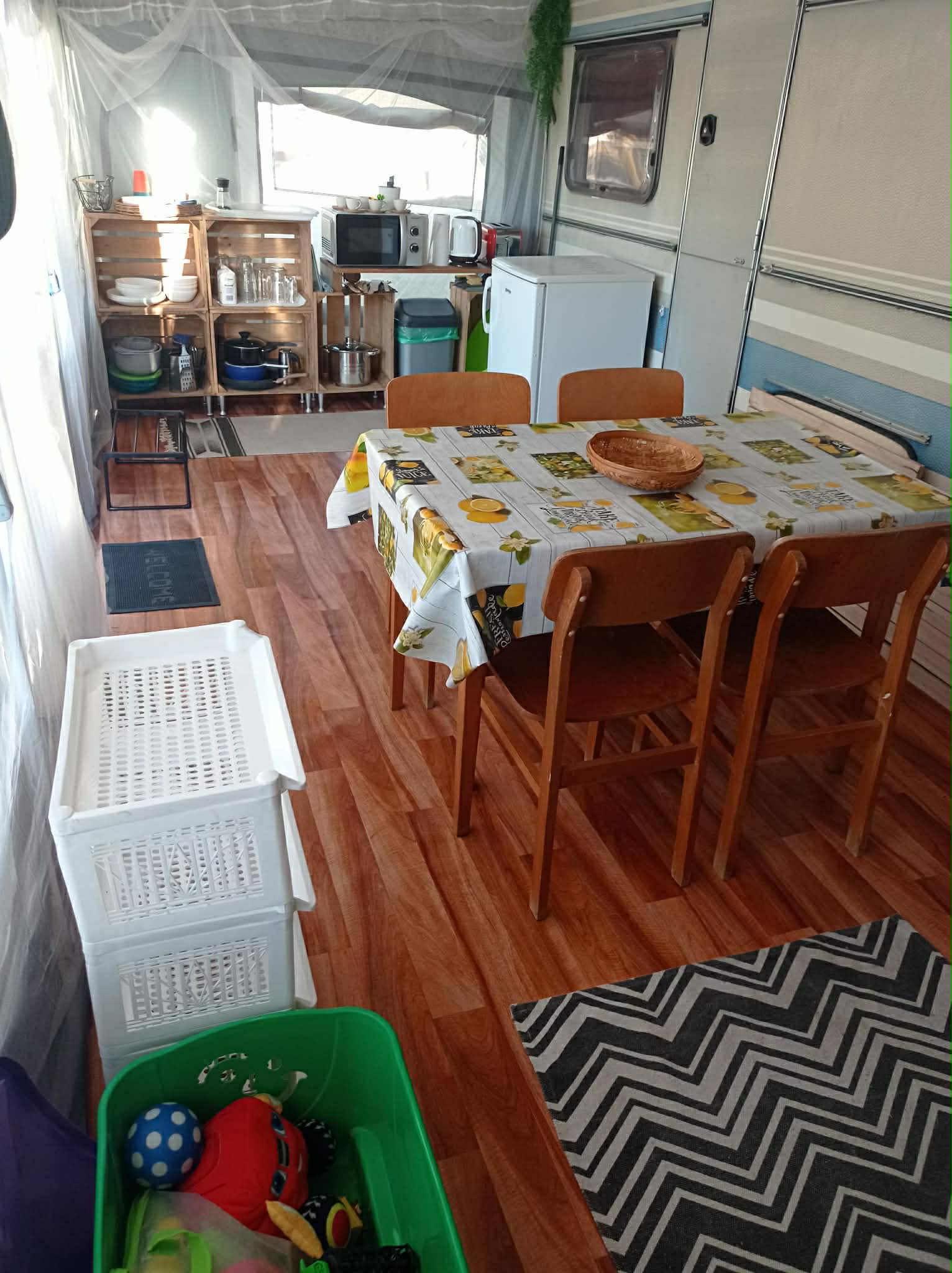 Elhelyezés: kempingbe telepített lakókocsiban, a lakókocsi befogadó képessége maximum 4 felnőtt, vagy 2 felnőtt és 3 gyermek. A lakókocsi hűtővel, mikróval, vízmelegítővel felszerelt.